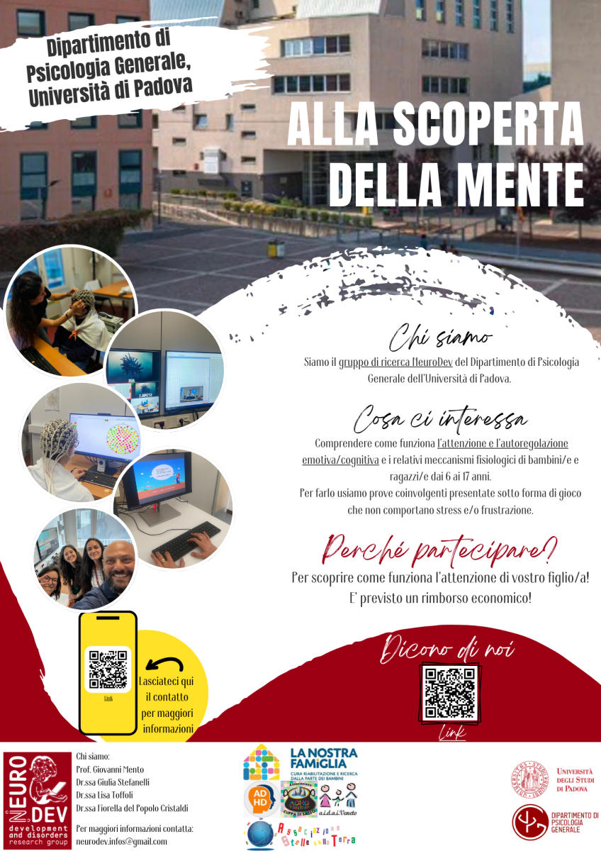 Iscriviti per partecipare gratuitamente a questo importante studio multicentrico che ha lo scopo di indagare come bambini/e a sviluppo tipico e atipico adattano le proprie risorse di attenzione e concentrazione alle caratteristiche dinamiche del contesto circostante: